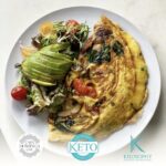 Huevos con jamón, hongos, espinaca, queso mozarella maduro, cebollín y tomate Cherry.